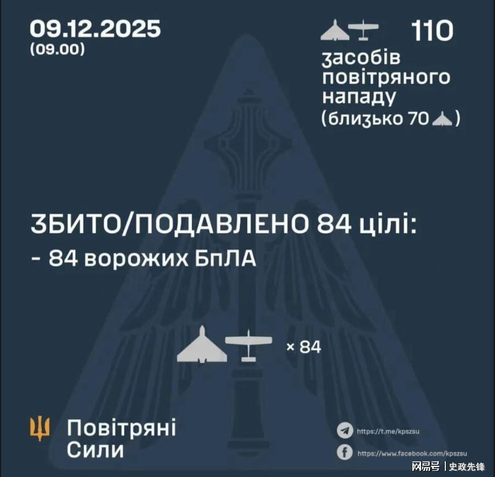 12月9日,俄军对乌克兰使用了110架膺惩无东谈主机,乌克兰防空部队共遏制了其中84架,遏制率76.3%。